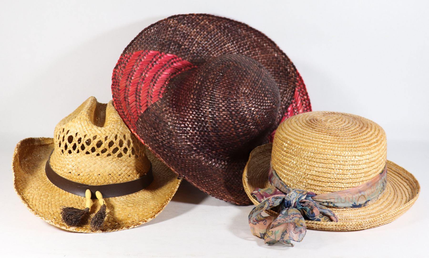 THREE STRAW HATS APPEAR TO BE NEAR SIZE MEDIUM