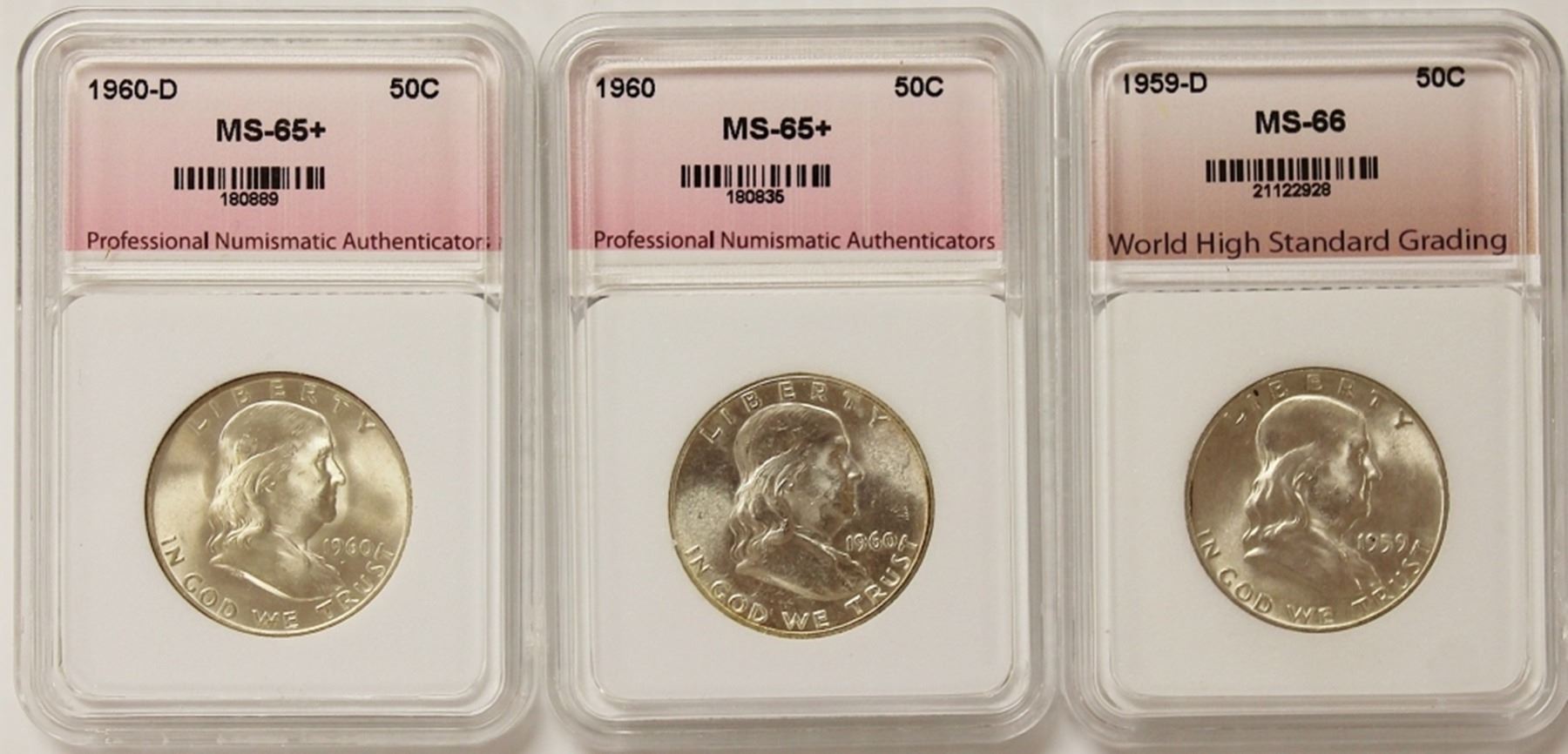 1959-D WHSG GRADED, 1960-D PNA GRADED AND 1960 PNA GRADED. ESTIMATE: $570-$650
