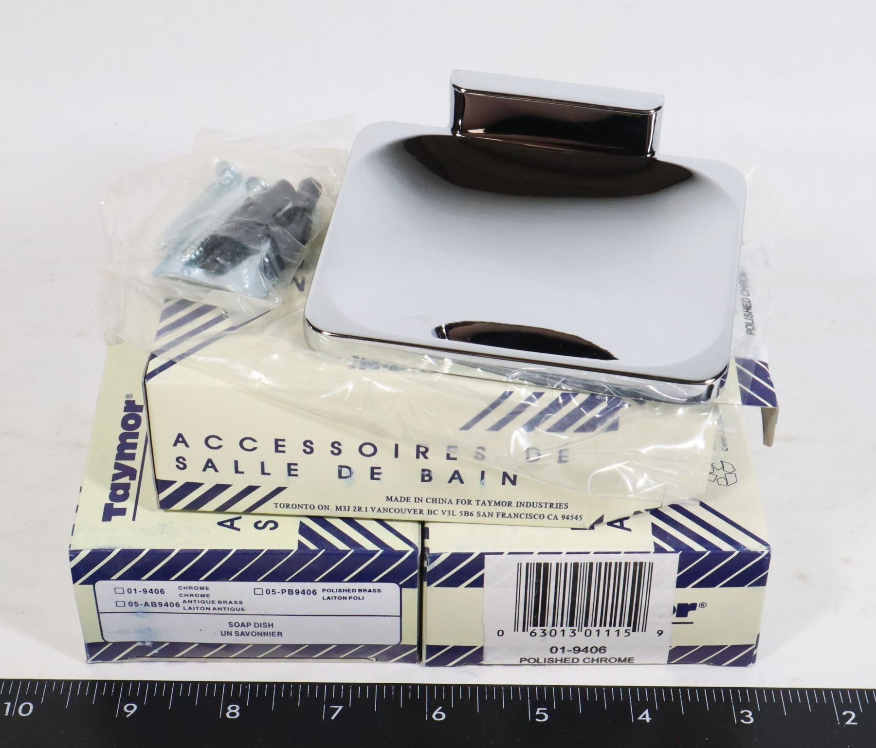 THREE TAYMORE POLISHED CHROME SOAP DISHES