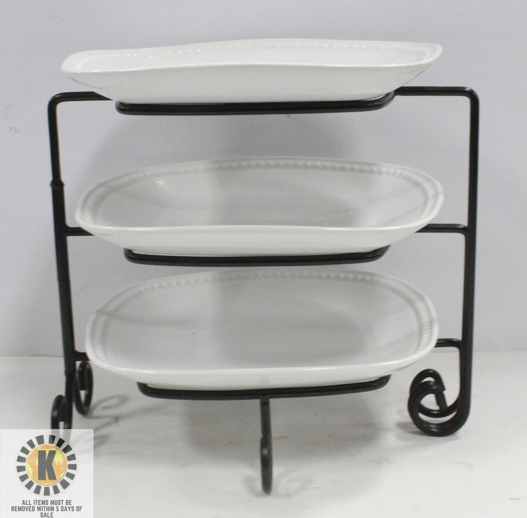 THREE TIERED SERVING DISH WITH 3 PLATES