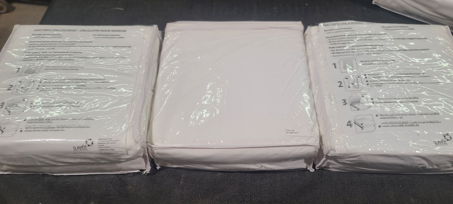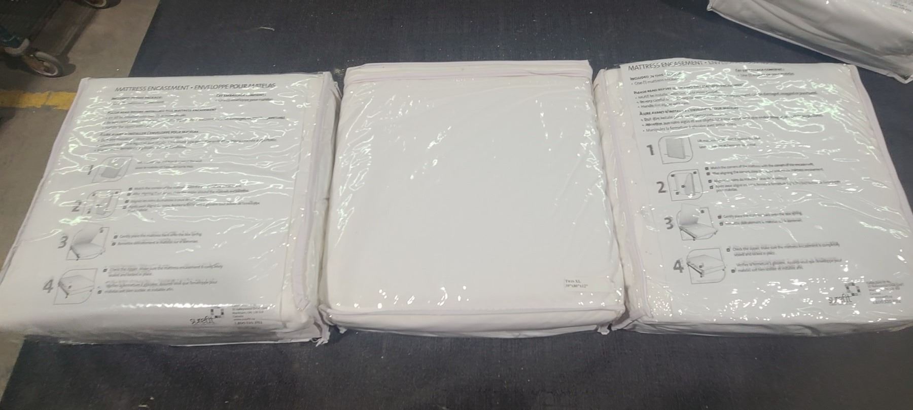 THREE TWIN XL 39 X 80 X 12" MATTRESS ENCASEMENTS - NEW - PACKAGING MAY BE DAMAGED