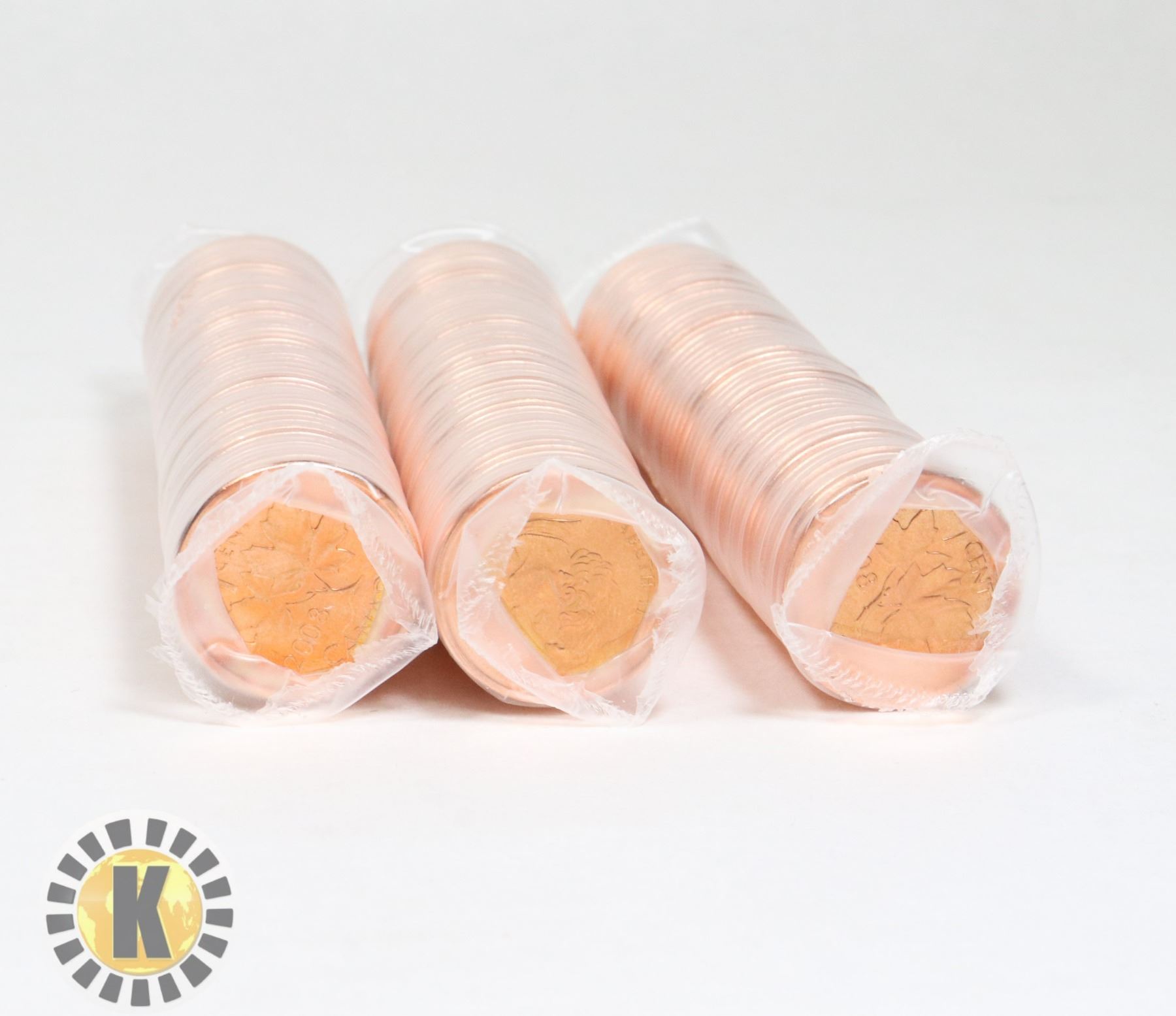 THREE UNCIRCULATED ROLLS OF 2008 CANADIAN PENNIES