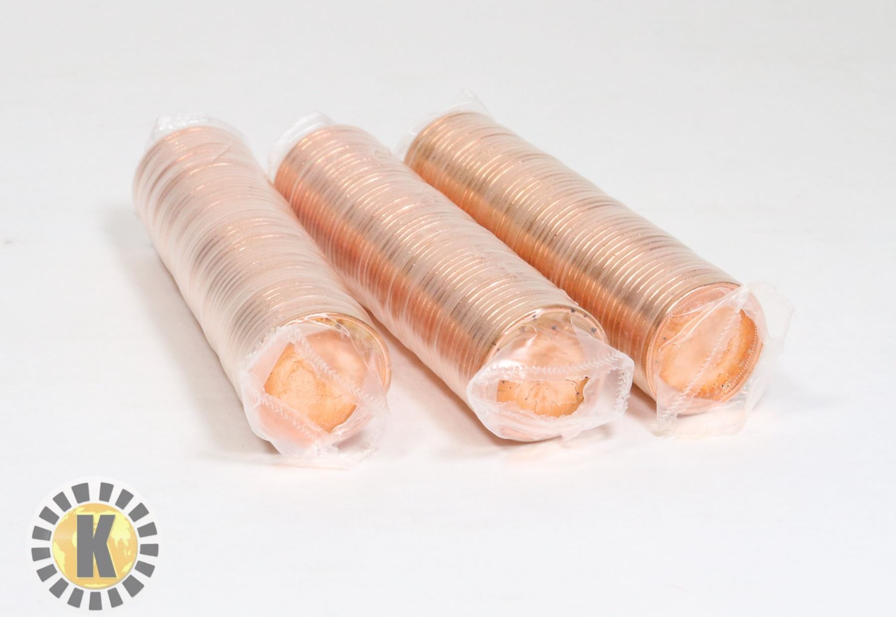THREE UNCIRCULATED ROLLS OF 2010 CANADIAN PENNIES
