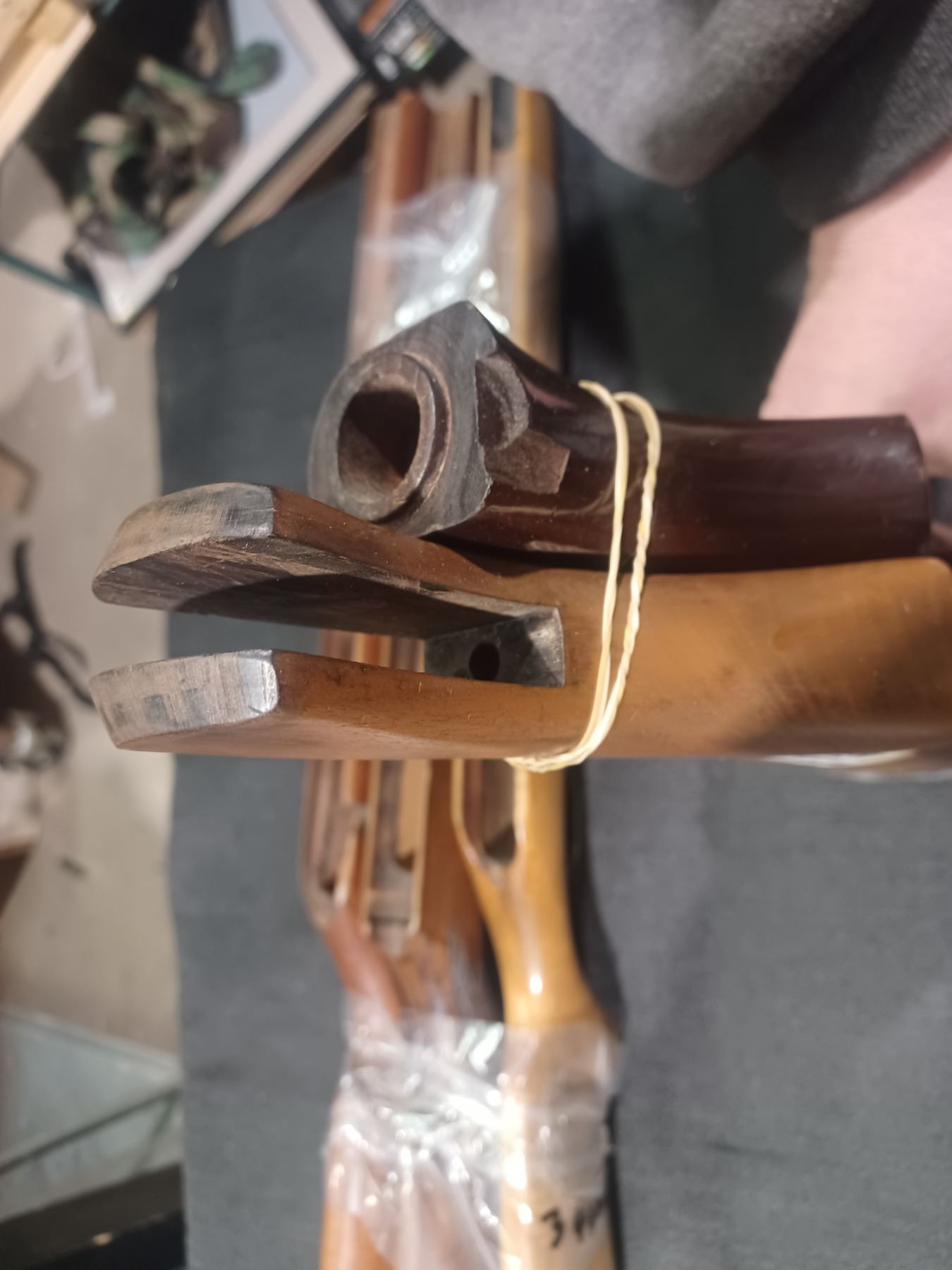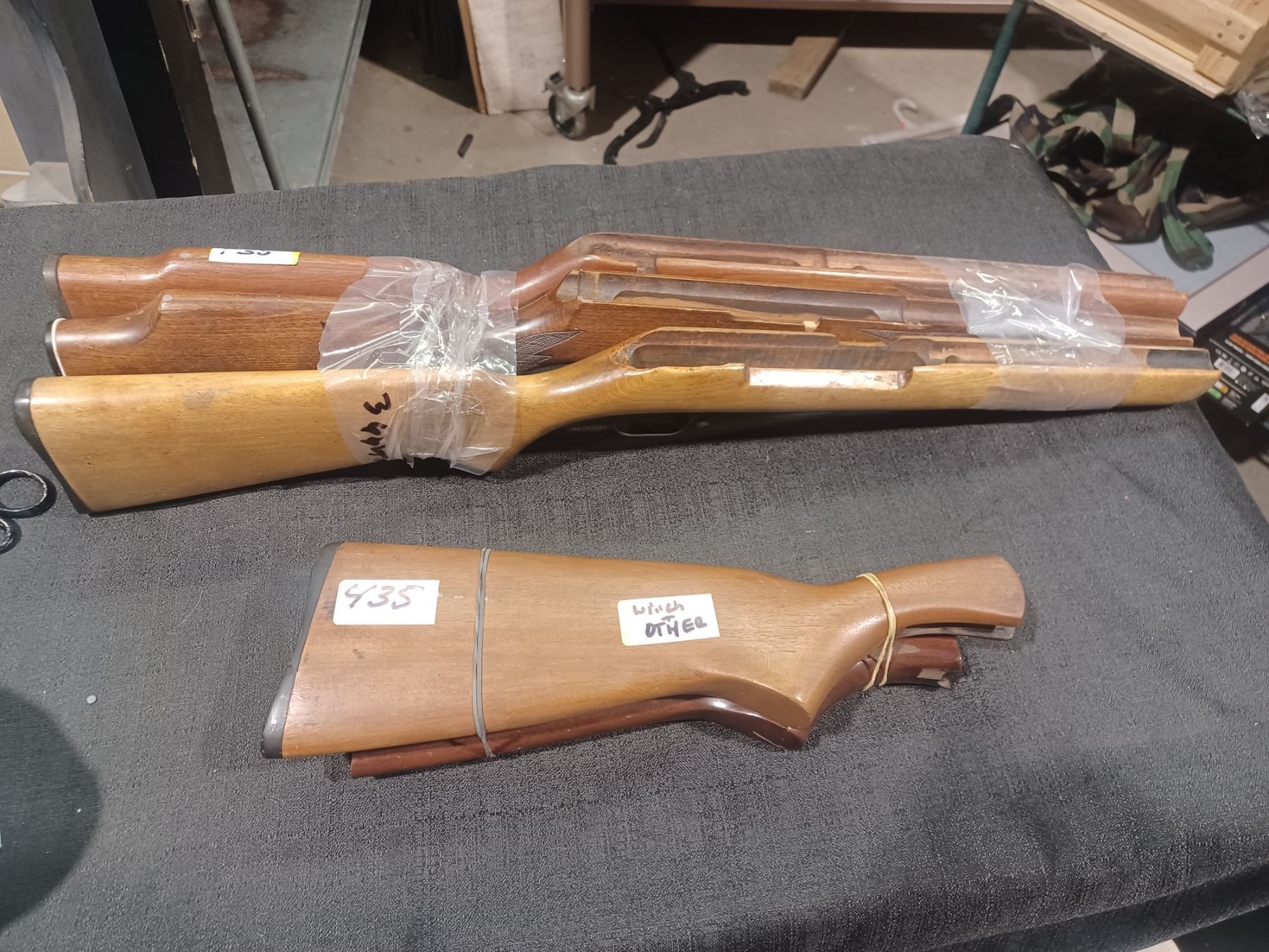 THREE UNKNOWN MAKE RIFLE STOCKS AND 2 SHOTGUN STOCKS