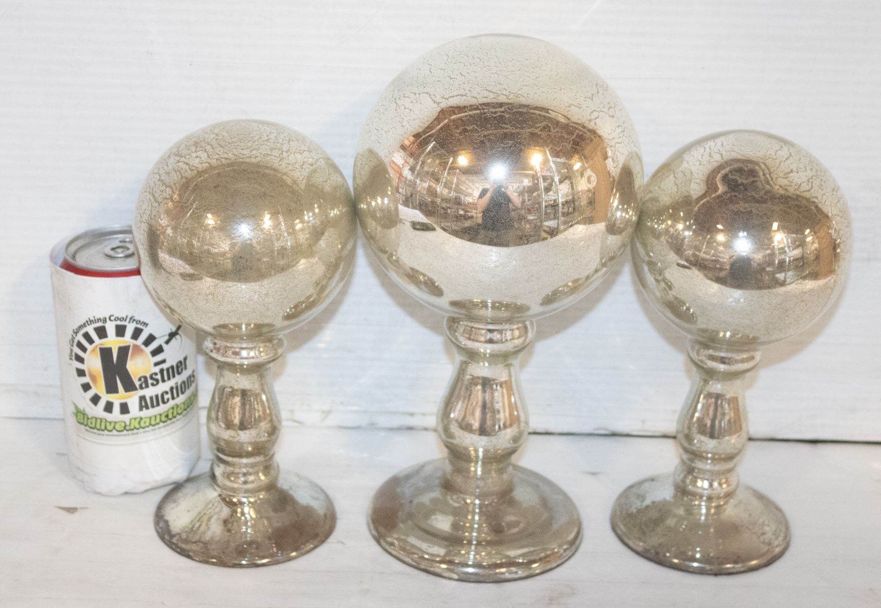THREE VARIOUS SIZED MERCURY BALLS DECOR