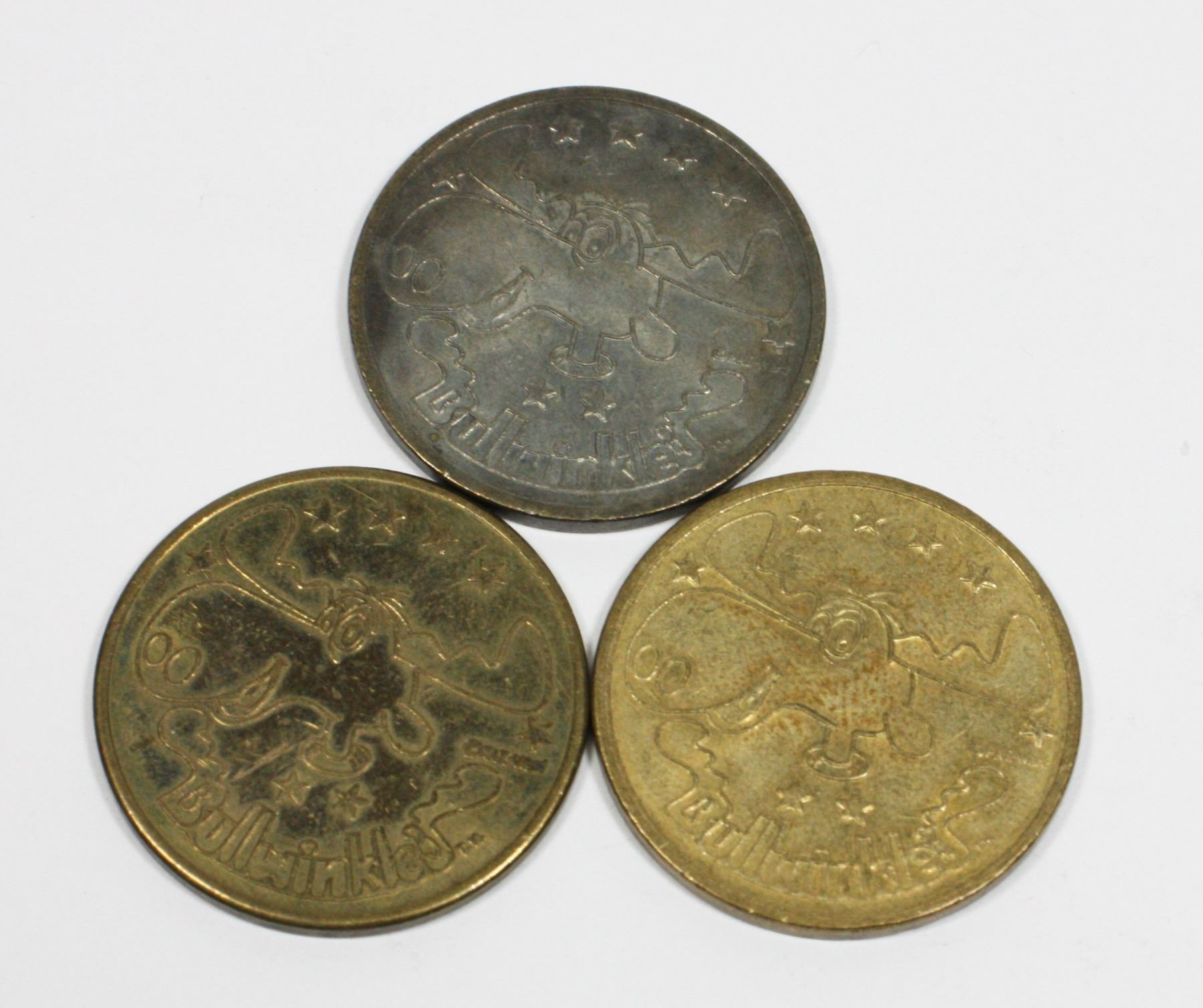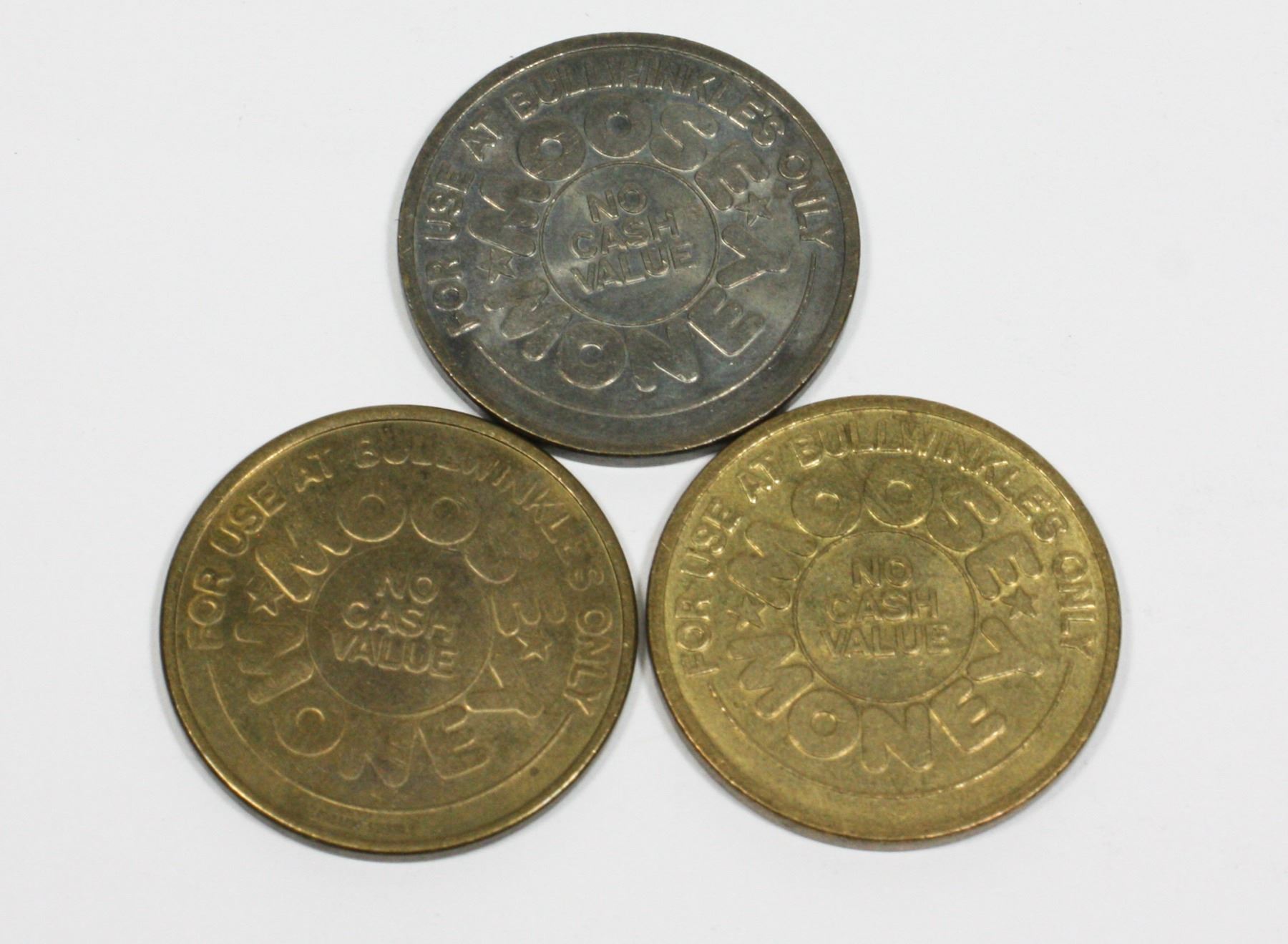 THREE VINTAGE BULLWINKLES MOOSE MONEY TOKENS