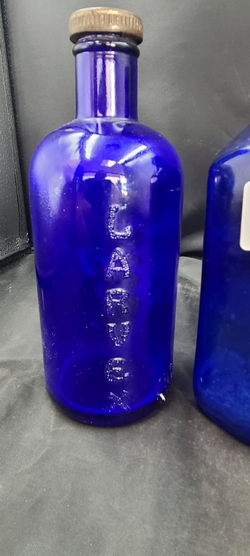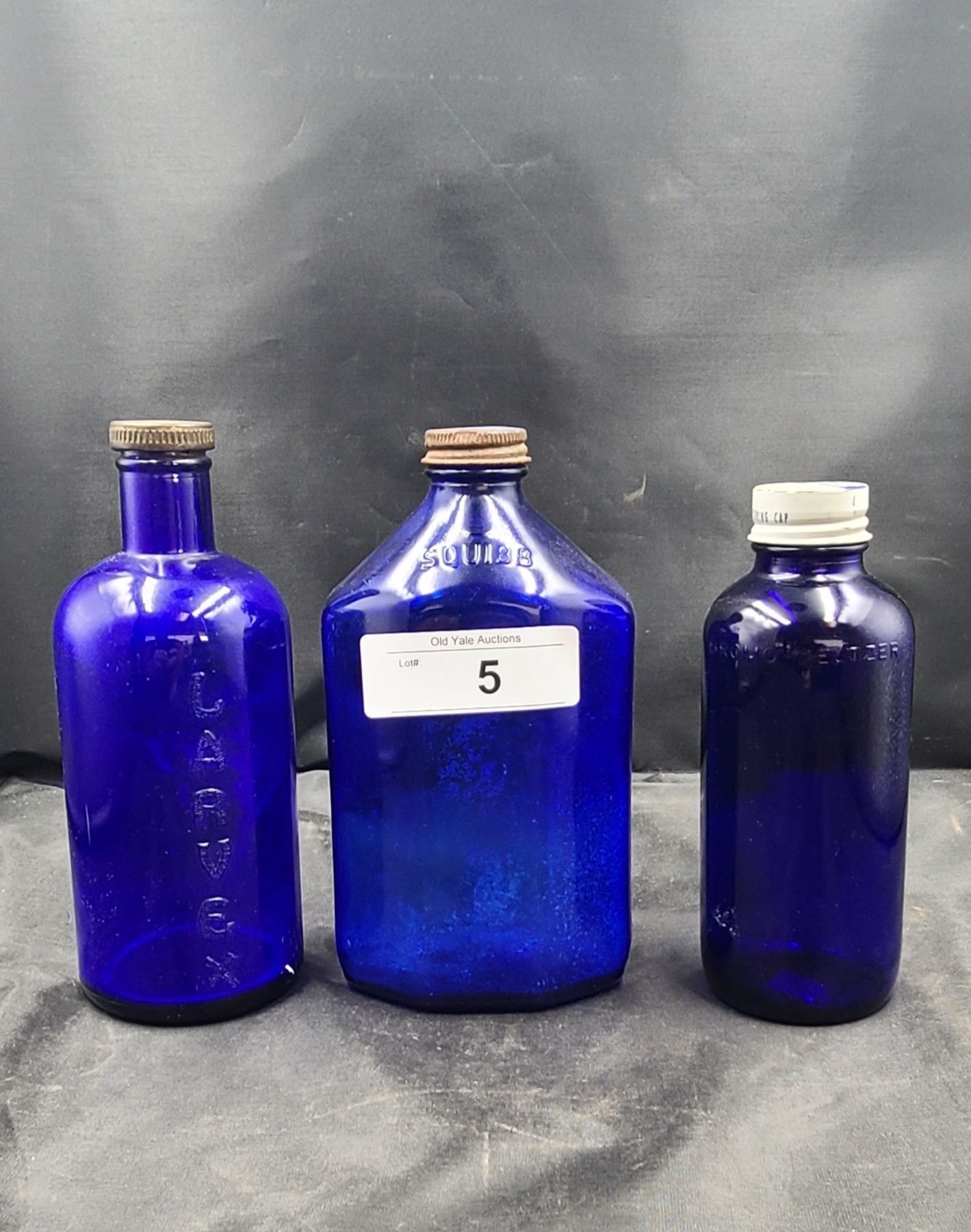 THREE VINTAGE COBALT BLUE GLASS MEDICINE BOTTLES