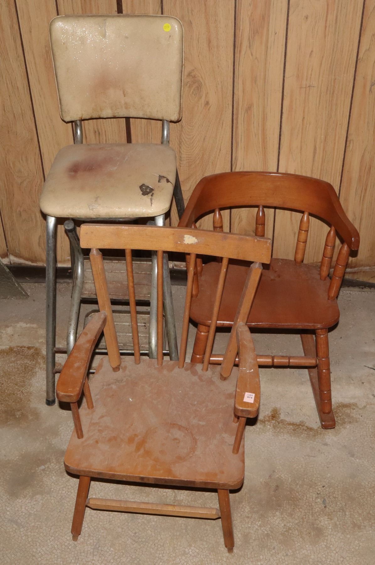 THREE VINTAGE KIDS CHAIRS, ONE IS A ROCKING CHAIR