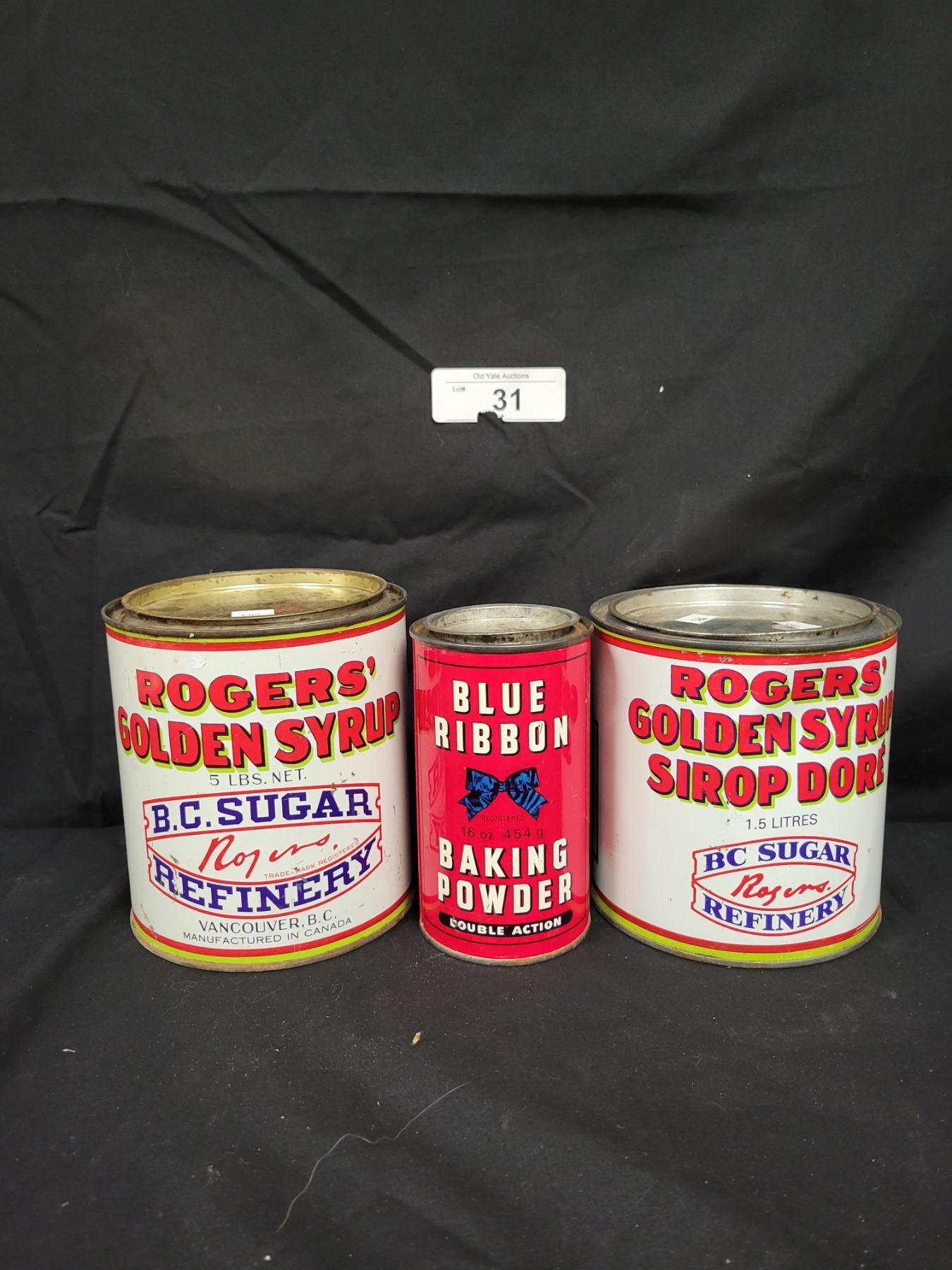 THREE VINTAGE ROGERS & BLUE RIBBON TINS