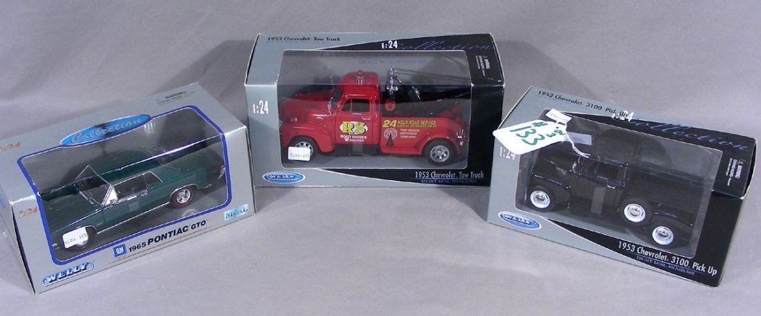 Including: 1953 Chevrolet 3100 Pickup, 1965 Pontiac GTO, 1953 Chevrolet tow truck. All collectors editions. All with original boxes.