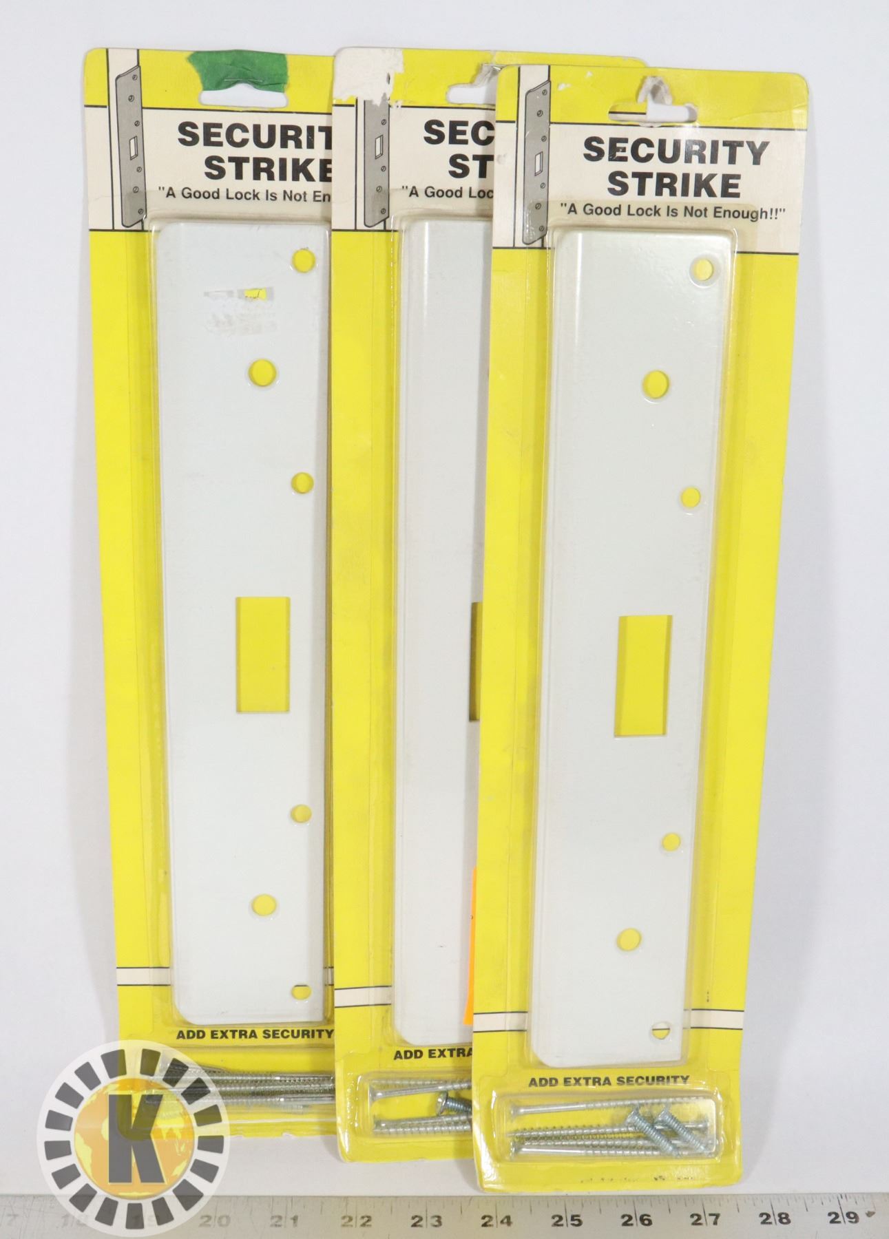 THREE WHITE FINISH SECURITY STRIKE PLATES