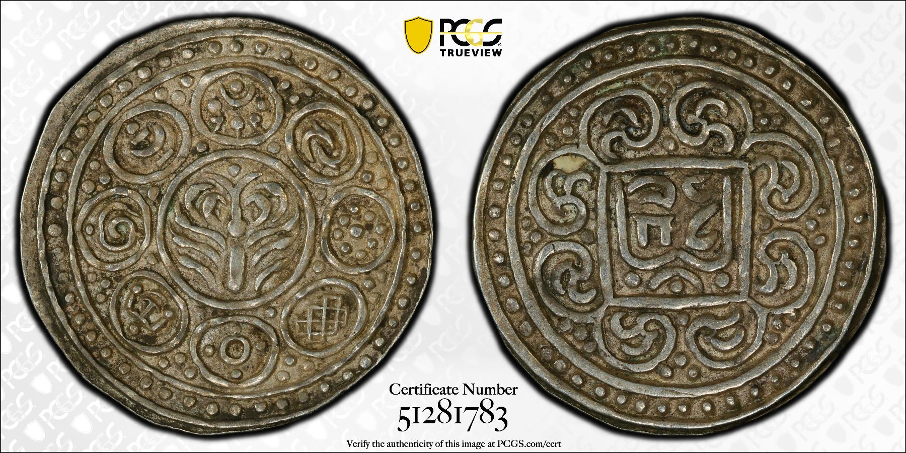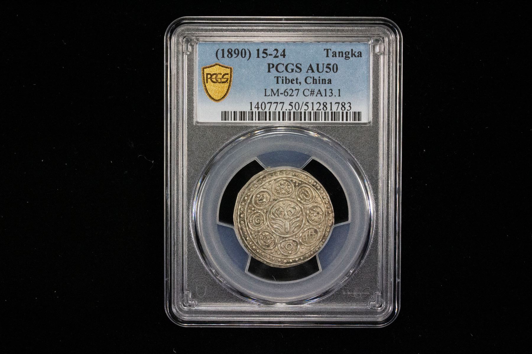 TIBET: AR kong-par tangka, BE15-24 (1890), Cr-A13.1, L&M-627, PCGS graded AU50.