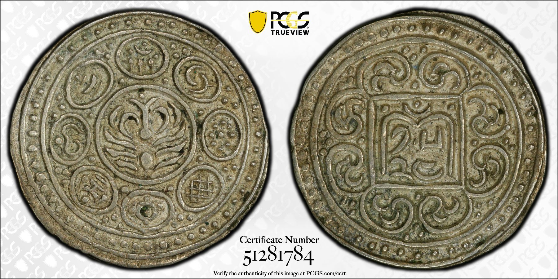 TIBET: AR kong-par tangka, BE15-24 (1890), Cr-A13.1, L&M-627, PCGS graded AU55.