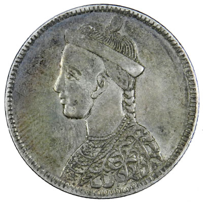 TIBET: AR rupee, ND (1902-11), Y-3.1, Szechuan trade issue, without collar, horizontal rosette, variety II, Very Fine to Extremely Fine, ex. Richard Haiman Collection. With portrait of Guang Xu derived from British Indian rupee of Queen Victoria.