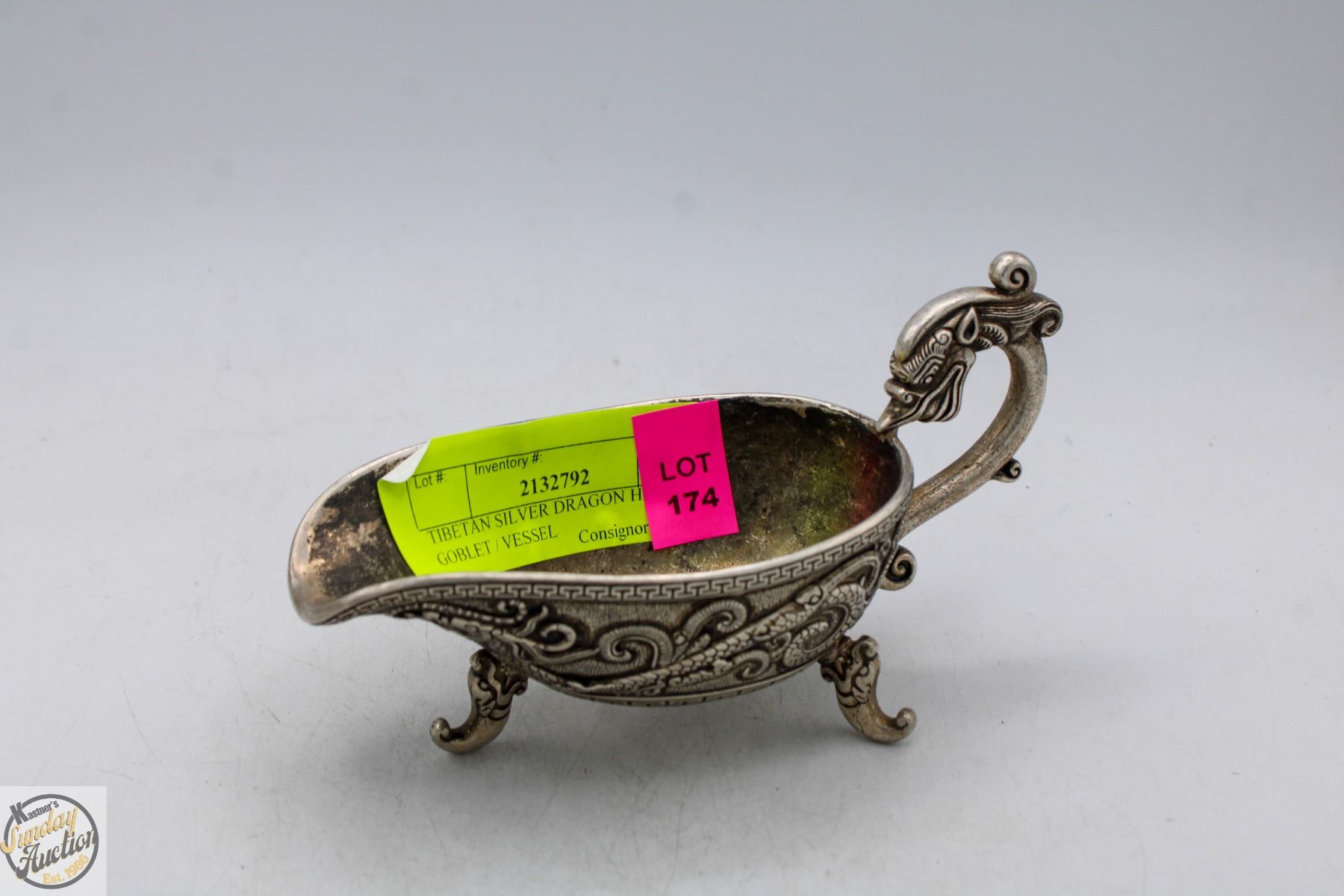 TIBETAN SILVER DRAGON HEAD GOBLET / VESSEL