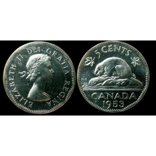 TIED FOR FINEST! 1953 NSF "MULE" 5¢ PCGS MS-63 Brilliant with full luster. Excellent strike with clean fields and nice mirror surfaces. Excessively rare in this designation. Expect strong bidding. A true rarity. Unpriced above MS-62