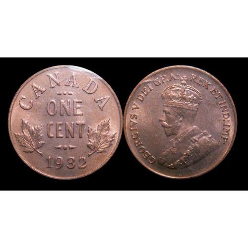TIED FOR FINEST KNOWN! 1932 1¢ ICCS MS65 PQ+ Full Red. Wow! An amazing "George V" Small cent. Excellent strike with clean fields and great surfaces. The nicest example ever handled by TCNC. Believed to be the nicest!