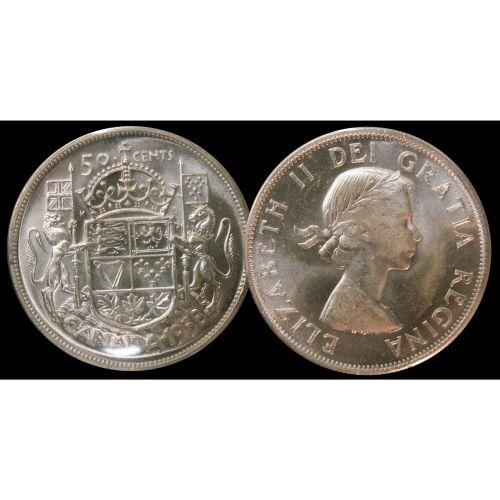 TIED FOR FINEST KNOWN! 1958 Dot 50¢ ICCS MS-65 PQ++ Very delicate toning over full underlying luster. An amazing example. Excellent strike with clean fields and great surfaces. The nicest example ever handled by TCNC.