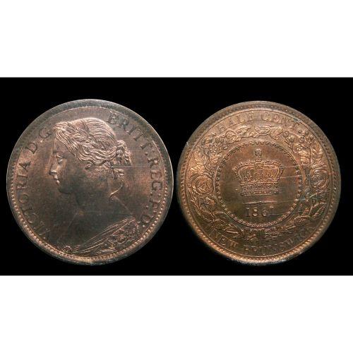 TIED FOR FINEST KNOWN! New Brunswick 1/2¢ 1861 ICCS MS-64 REDPQ+, 90% red luster with great fileds. Believed to be the nicest.