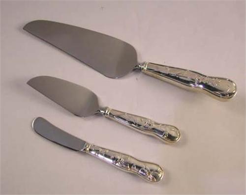 TIFFANY AND CO. STERLING SILVER KNIFE SETS; Comprising two piece cheese knives within fitted box, and a cake knife