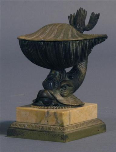 TIFFANY & CO. BRONZE DOLPHIN INK STAND,