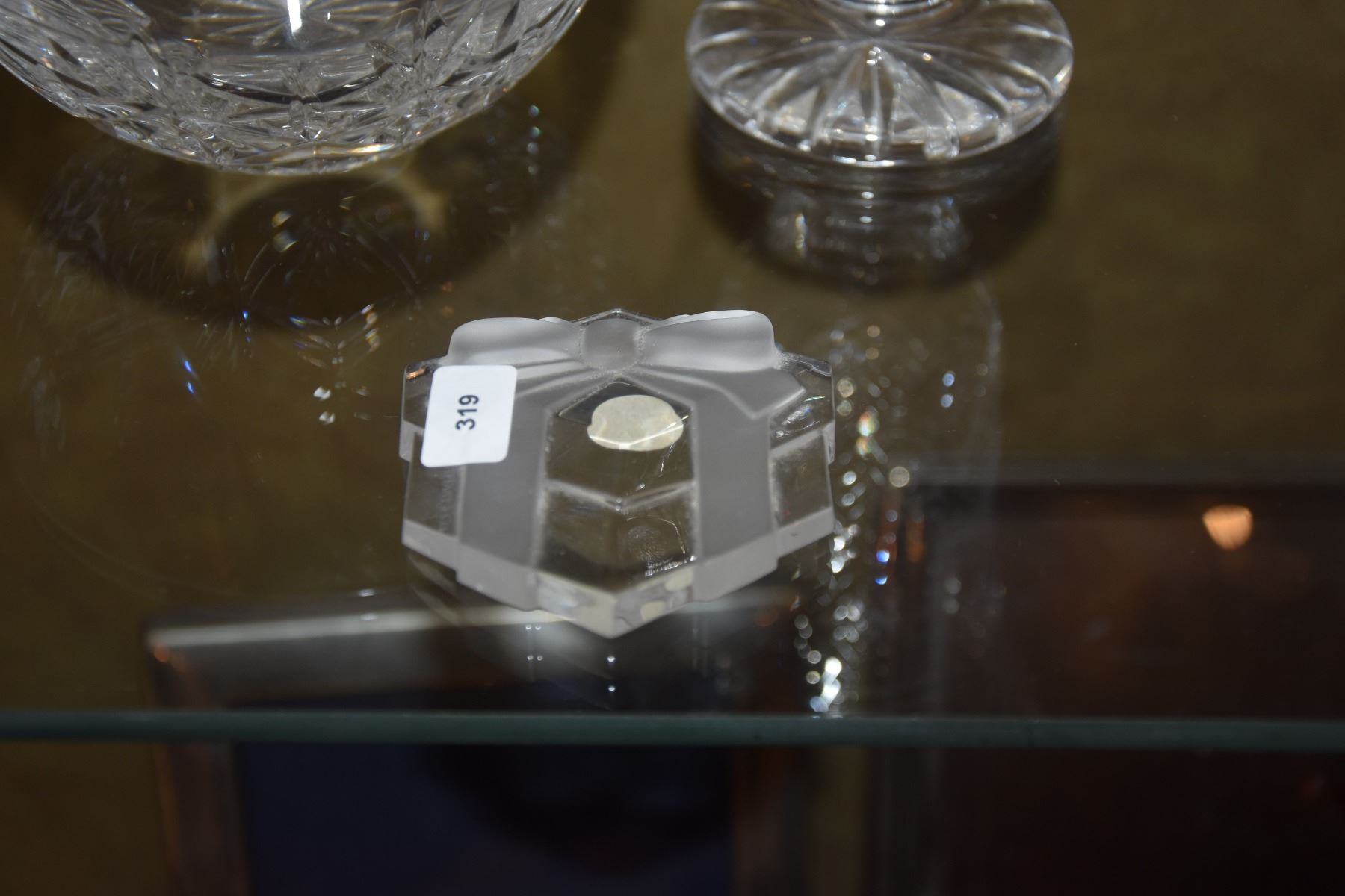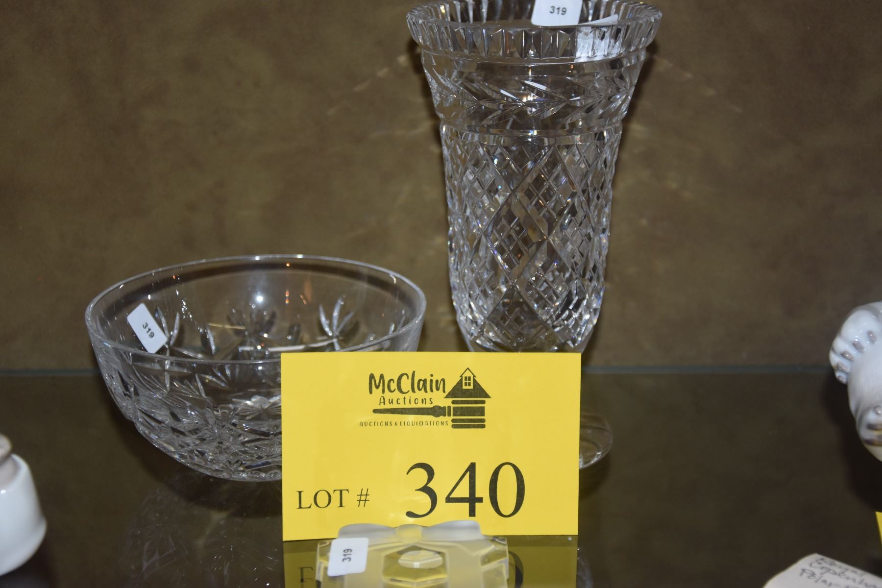 TIFFANY & CO. CRYSTAL BOWL, WATERFORD CRYSTAL VASE & TIFFANY CRYSTAL GIFT BOX W/FROSTED BOW ORNAMENT STYLE TRINKET (3 PCS)