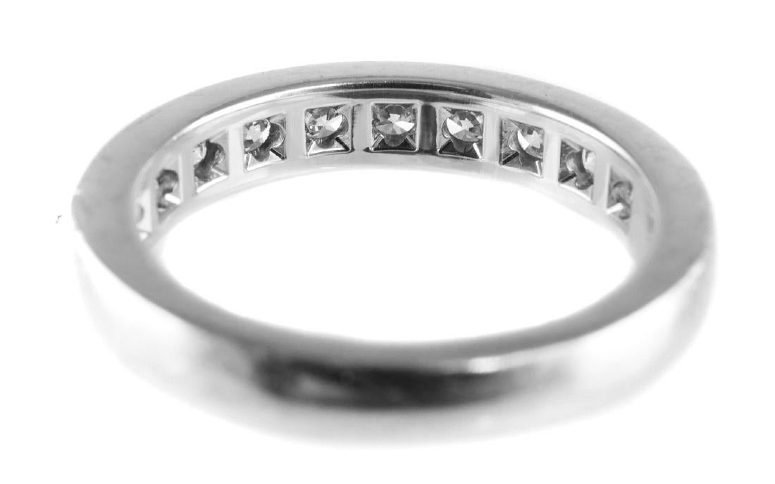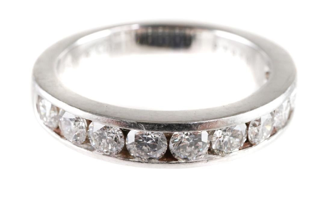 Ten channel-set diamonds, totaling about one karat, in platinum. Signed inside band. Size 6-3/4. Weight 7.5 grams.