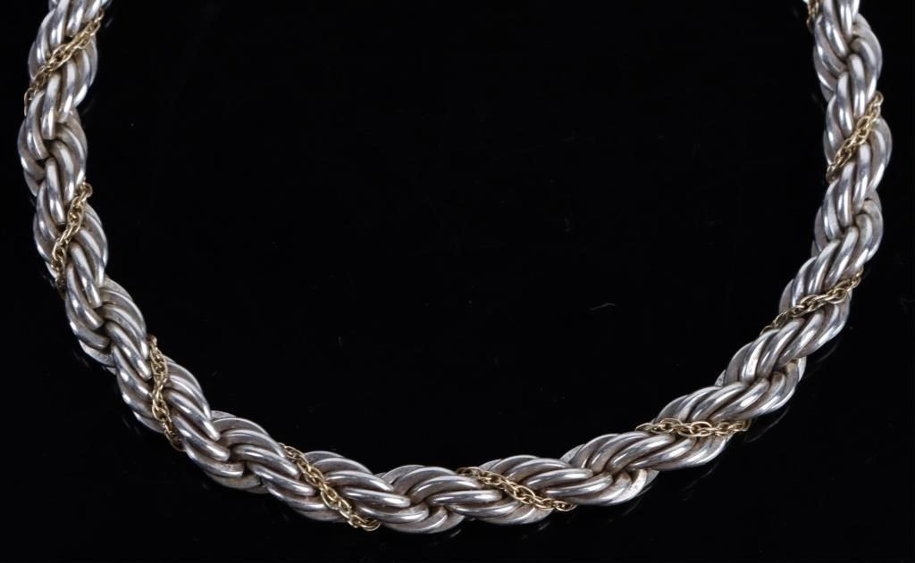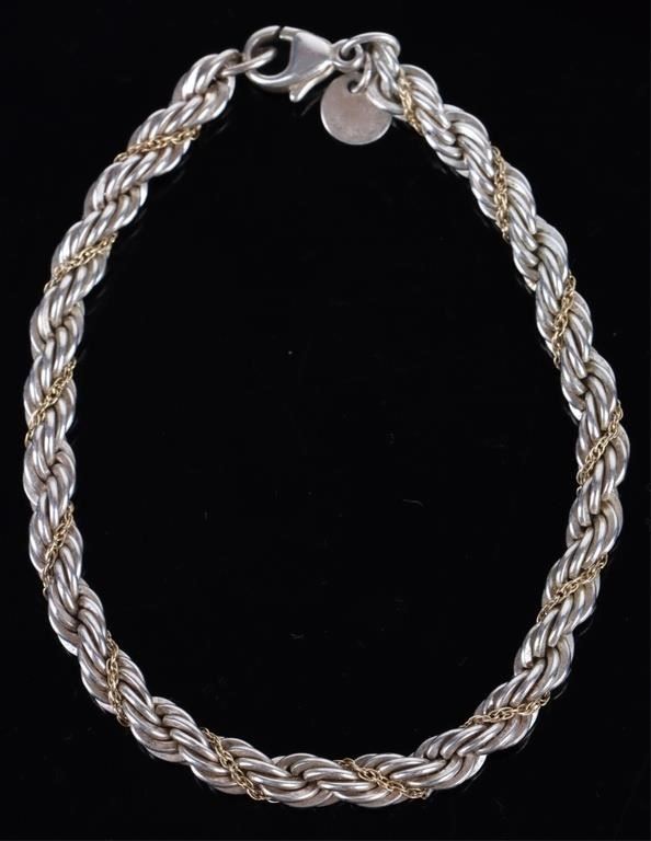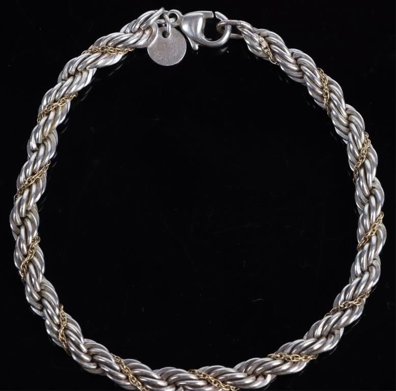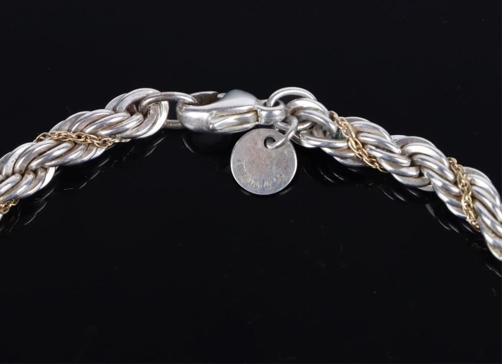 Sterling silver Tiffany & Co. bracelet with 18k gold chain wrapped around.