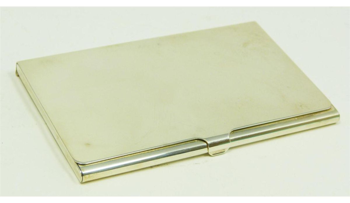 Tiffany & Company 925 sterling silver business card case. Includes original pouch and box. Measures 3 3/4" length x 2 3/8" height (9.5cm x 6cm). Silver weight of 1.8ozt.