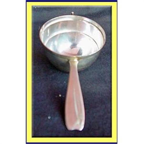 Deep, stepped scoop. Short handle, perhaps for more controle. Back of handle has hallmark TIFFANY & CO. STERLING. M. THe letter M stands for the artist