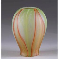 Lot 225 TIFFANY DECORATED SHADE Same as the above lot, signed “LCT”. SIZE: 5-1/2” t x 4” dia. CONDITION: Fitter rim roughness and several open air bubbles. 5-71021