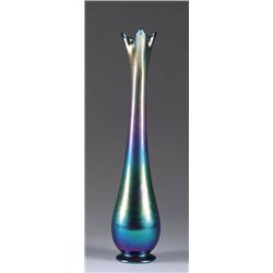 Lot 584 TIFFANY FAVRILE EXPO VASE Rare Tiffany vase was created for the Alaska Yukon Exposition. The tall slender vase has bands of iridescent color ranging from blues to greens to purples to golds and is finished with a four hole bud vase top. Signed on bottom āL C Tiffany Favrile Alaska Yukon Ex- 2145Eā. SIZE: 15-1/4ā t. CONDITION: Three tiny spots of missing iridescence, otherwise very good to excellent. 5-70406