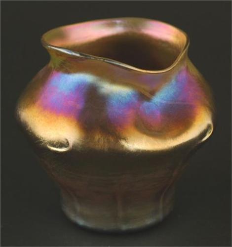 TIFFANY FAVRILE GOLD VASE shaped rim, dimpled shoulder, paper label and signed "LCT" and numbered "K868", 3 1/2" high