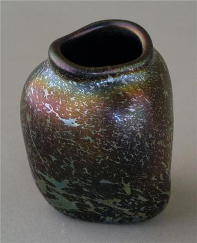 TIFFANY FAVRILE "STONE" VASE organic form, black and silver/blue mottled decoration resembling stone, paper label and numbered "o2474", 3 1/2" high