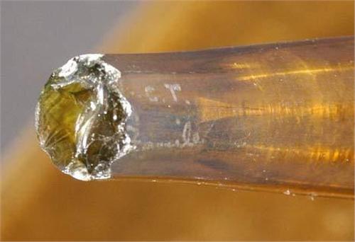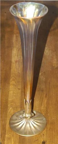 TIFFANY FAVRILE VASE with bronze base, 17" high, glass and base signed, condition: fitter end of vase with chips