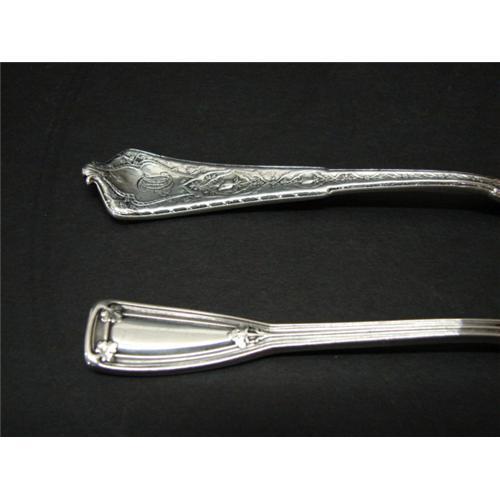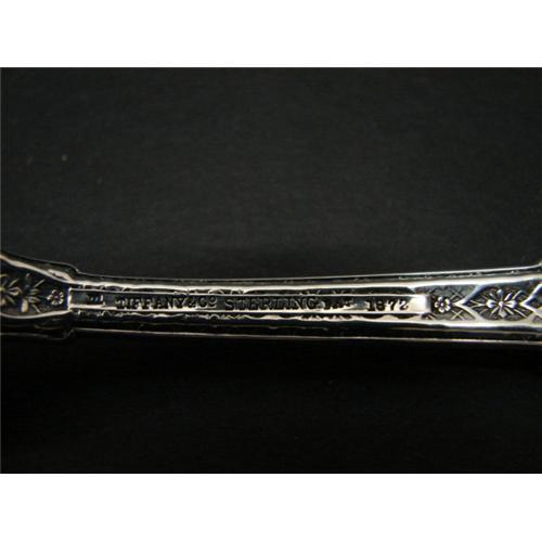 PAIR OF TIFFANY & CO. STERLING SILVER BUTTER KNIVES. Consists of a master butter knife (8.25" L) and a butter knife with teeth at one side (7.375" L). Both pieces are marked "Tiffany & Co. Sterling". The master butter knife is monogrammed.