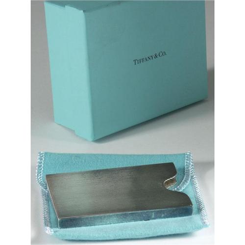 STERLING: A Tiffany & Co. sterling silver coin edge card case, ribbed surface, marked on bottom edge, ''Tiffany & Co. 925 Spain'', 3.5'' x 2.25'', original felt sleeve and box with receipt included, 2.8 ozt.