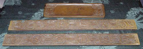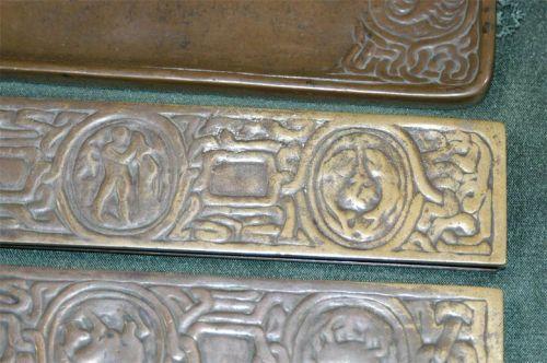 TIFFANY STUDIOS BRONZE PEN TRAY AND BLOTTER ENDS, Zodiac pattern, condition: finish wear, PACKING AND SHIPPING (excluding insurance) $20,