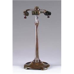 Lot 218 TIFFANY STUDIOS LAMP BASE Bronze Art Nouveau colonial style lamp base with nice patina finish. Signed “Tiffany Studios New York 533”. SIZE: 19” t. CONDITION: Very good to excellent. 5-70463