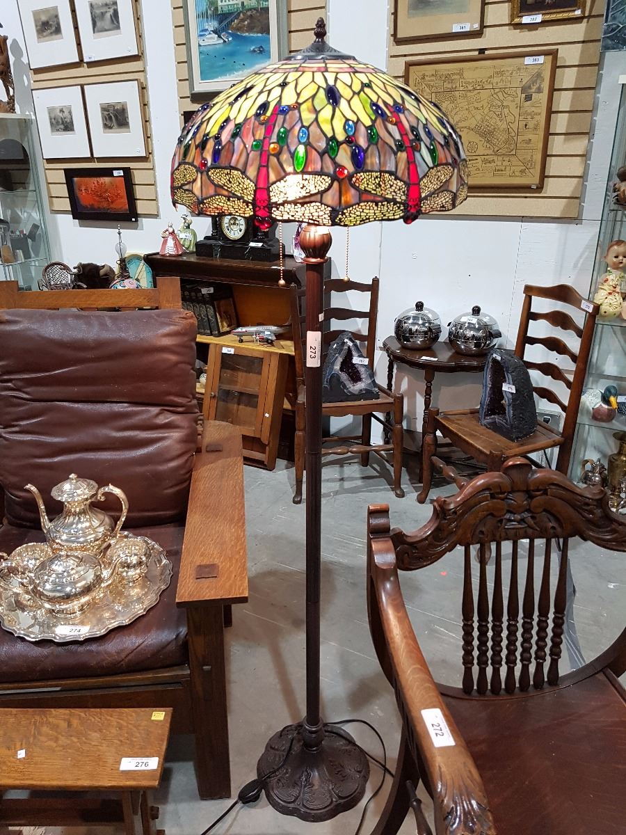 TIFFANY STYLE DRAGONFLY STAINED GLASS FLOOR LAMP