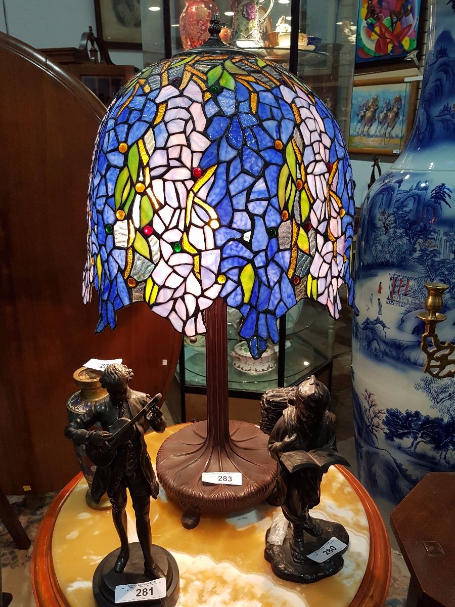 TIFFANY STYLE STAINED GLASS TABLE LAMP WISTERIA PATTERN