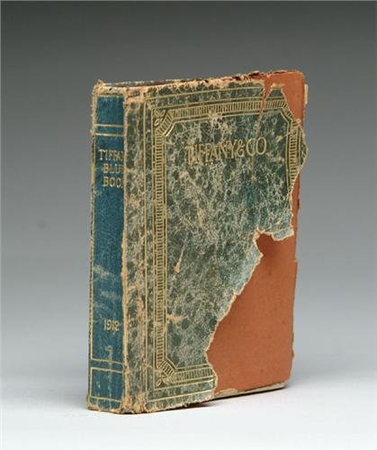 TIFFANY and CO. BLUE BOOK. Wonderful small "Tiffany and Co. Blue Book" price guide for Tiffany Jewelers is the original 1912 Edition. Contains prices for all the items Tiffany and Co. offered for that year. SIZE: 4-1/2 in. x 3-1/2 in. CONDITION: Front cover is tattered and missing approx. 1/3. Binding is weak, but all pages appear to be present and in good condition. Estate of Jon Heiden and Donald Mooers 5-60788