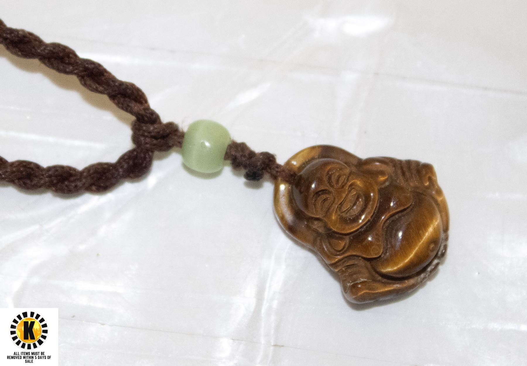 TIGER EYE AND JADE LUCKY BUDDHA AMULET 20"