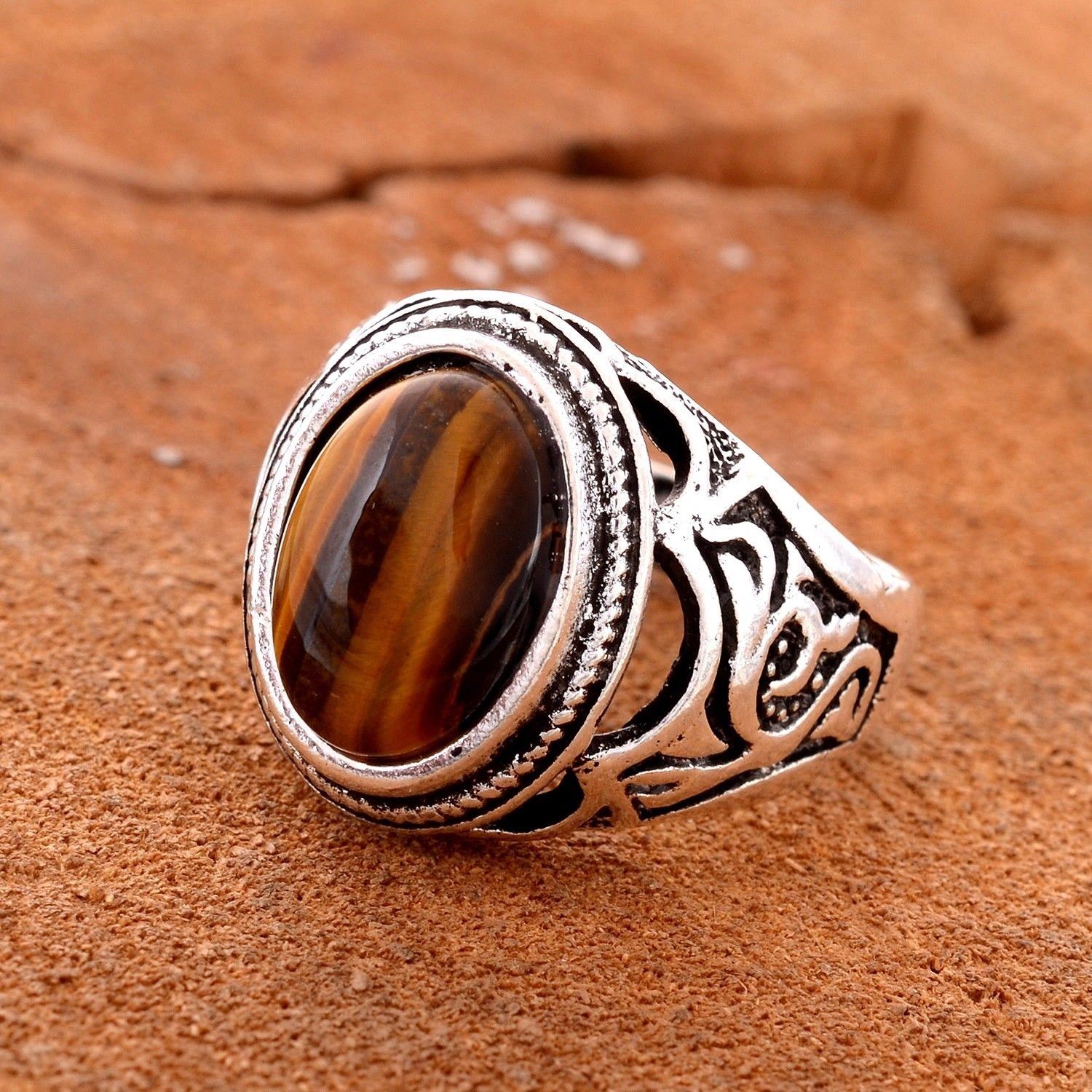 TIGER'S EYE GEMSTONE SILVER PLATED RING SIZE 9 , GEMSTONE - TIGER'S EYE , GEMSTONE COLOR - BROWN , STONE SHAPE - OVAL , MAIN STONE SIZE - 14X9 MM , QUANTITY - 1 PIECE RING , WEIGHT - 7.300 GRAMS