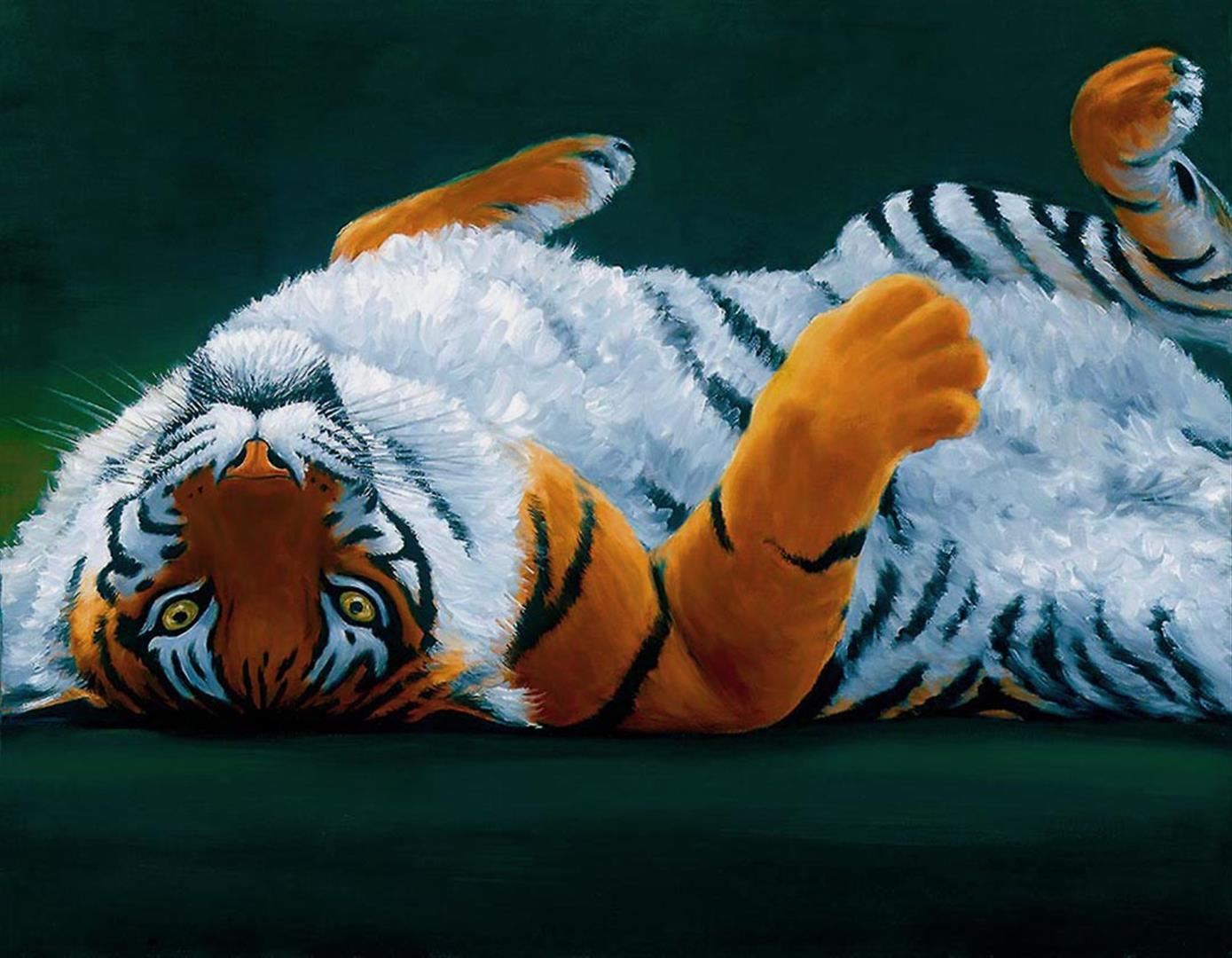 Giclee on canvas, limited edition by Charles Lynn Bragg. A big cat always knows when it is time to relax. 15 x 11.5