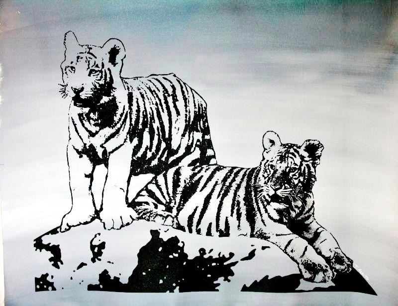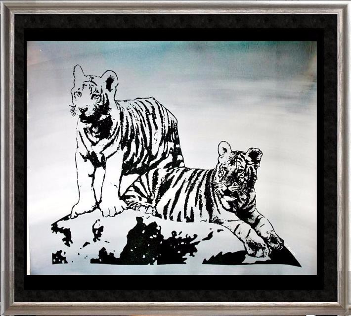 Artist: TONY AZZITO | Title of Art: TIGERS 3920 | Medium: HAND SIGNED ORIGINAL PAINTING WITH SILKSCREEN ON CANVAS | Edition Size: Original | Art Size: 30x37 | Offered Unframed. Framing Presentation are often shown for concept only. Read description: If framed, framed size will be given | Value: $ 1000