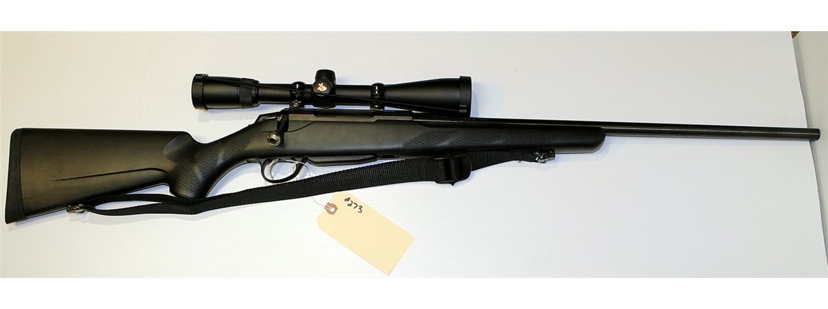 CAL: 243 WIN, SN: 745989, STAINLESS STEEL BARREL, BLACK SYNTHETIC STOCK, NIKON 4.5X14 SCOPE, MADE IN FINLAND
