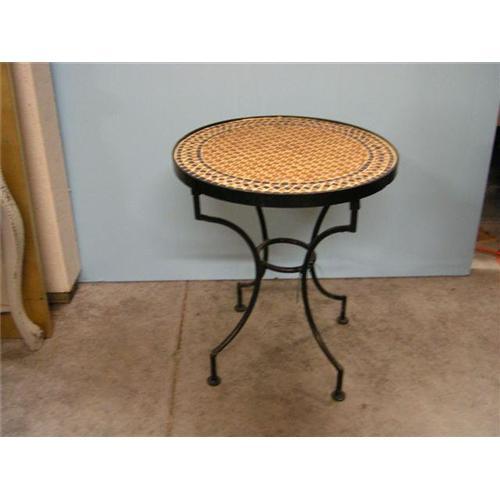 HEAVY DUTY TILE TOP WITH WROUGHT IRON FRAME.