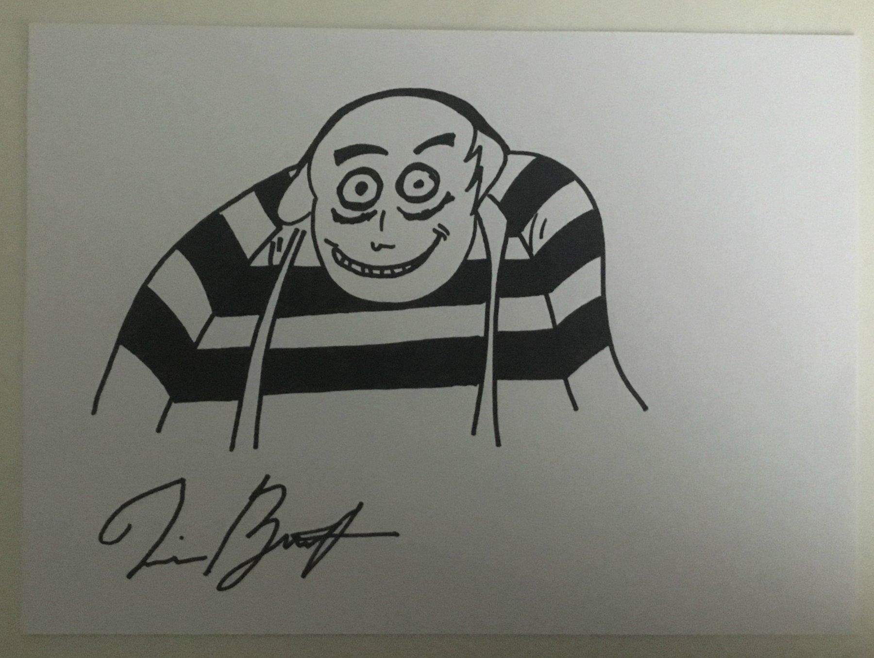 Tim Burton's drawing of UNCLE FESTER on A4 card, signed. Supplied with coa.