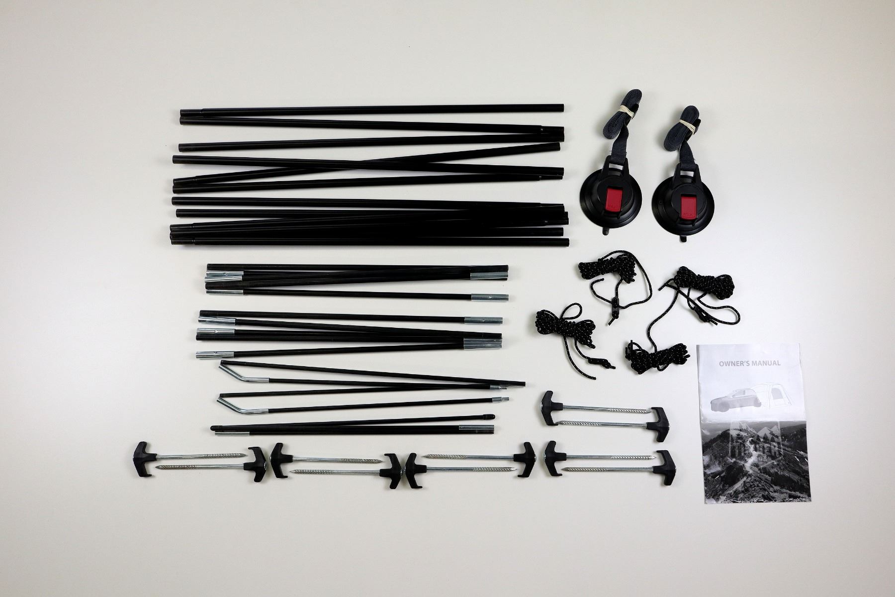 (1) KHAKI / GREY / BEIGE NYLON TENT, MODEL: HW 30304-1-KHA, SLEEPS 5 PEOPLE, APPEARS COMPLETE WITH POLES, PEGS, STRAPS / SUCTION CUPS, HAS FLOOR IN IT, TENT FLY, INSTRUCTIONS / MANUAL, CARRIER BAG, ETC., CAN BE FREE STANDING OR ATTACHED TO SUV STYLE VEHICLE, APPROX. 10FT L X 10FT W X 7FT H. SEE PHOTOS.